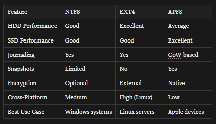 A Deep Dive into NTFS, EXT4, and APFS